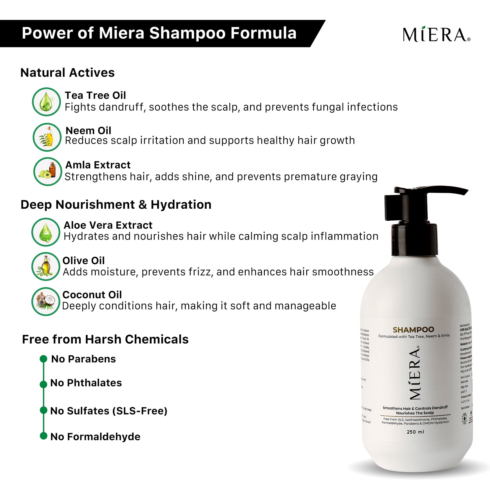 • Tea Tree Oil & Neem combat dandruff and scalp infections.